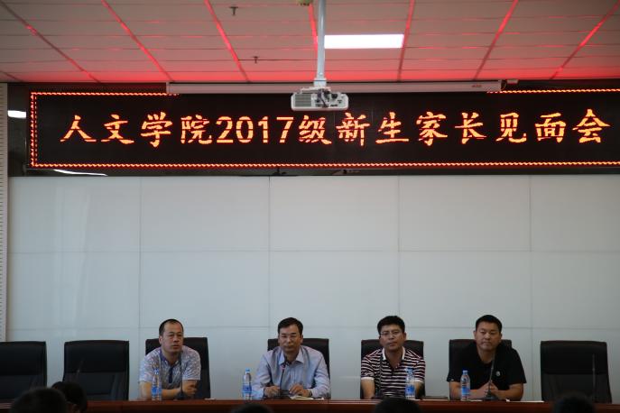 于贺兰山校区文荟 楼309会议室召开了学院2017级新生家长见面会,院长胡玉冰、党委副书记马小军、学工办主任刘杰及2017级辅导员潘巍出席此次会议。大会由马小军主持,2017级新生家长参加了会议。