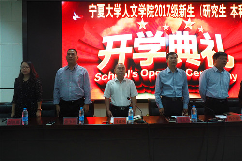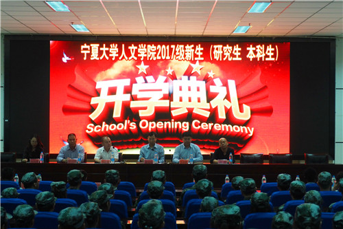2017级新生开学典礼在贺兰山校区文荟楼东侧报告厅举行,学院党委书记马正亮,院长胡玉冰,党委副书记金玉河、马小军,副院长刘鸿雁、杨浣及三办三系主任出席,典礼由马正亮主持,2017级166名本科生及54名研究生参加。