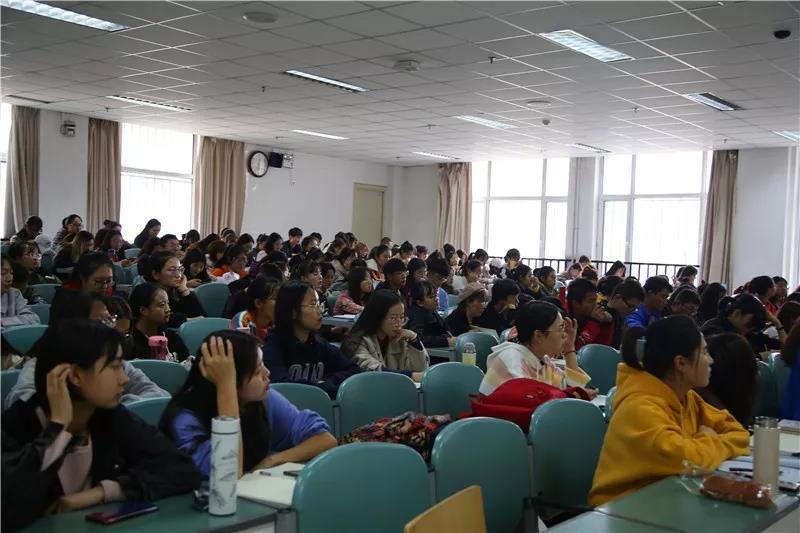 院长胡玉冰主讲,学院辅导员余晓玲、第三十三期入党积极分子、第十期发展对象等一百多人参加。