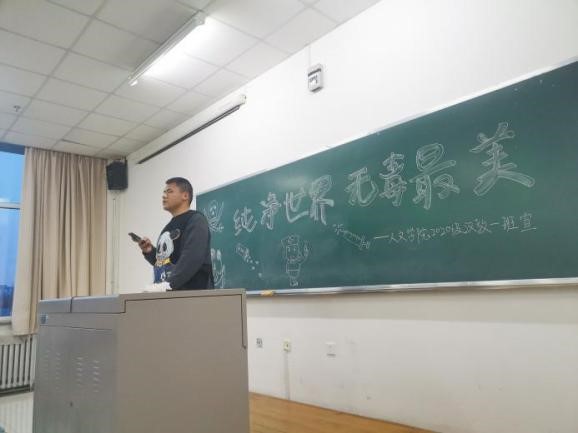于贺兰山校区文荟楼各班教室召开了以“禁毒第一课”为主题的班会,2020级全体学生参加。