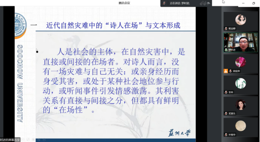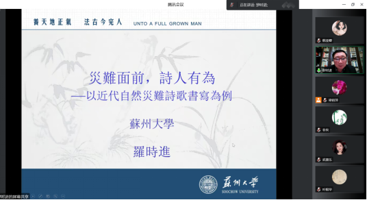 举办了题为“灾难面前,诗人有为——以近代自然灾难诗歌书写为例”的学术讲座,讲座采用线上的形式展开。本次讲座特邀苏州大学特聘教授、博士生导师罗时进老师主讲,讲座由av女优