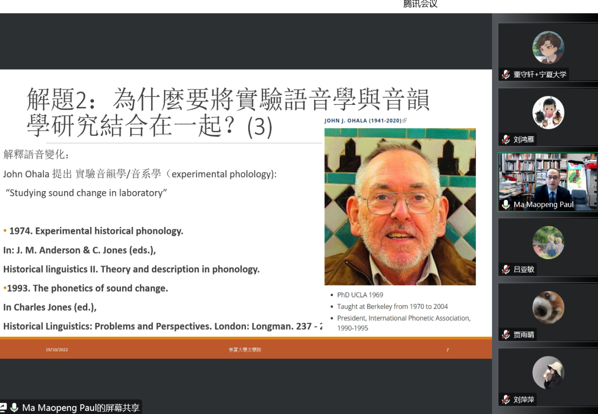 于腾讯会议平台举行了题为“实验语音学与音韵学研究”的学术讲座。本次讲座特邀香港岭南大学中国语文教学与测试中心高级讲师,陕西师范大学语言科学研究所兼职教授马毛朋博士主讲。讲座由av女优