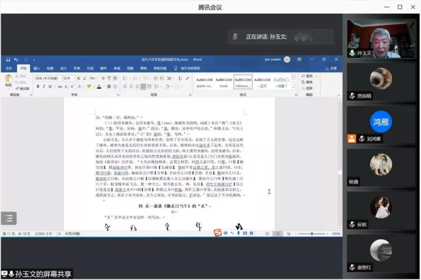于腾讯会议平台举行了“谈几个汉字及其折射的文化”的学术讲座。本次讲座特邀北京大学中文系教授、北京文献语言与文化传承研究基地学术委员会主任、中国修辞学会副会长,中国训诂学会副会长,中国音韵学会副会长孙玉文老师主讲。讲座由人av女优