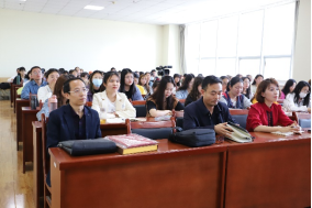 院长王岩森教授主持,副院长丁峰山、杨晓宇和教科办李丽老师及2018、2019级汉语言(教师教育)一班同学共同聆听讲座。