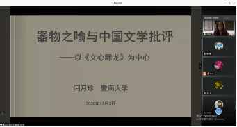 于腾讯会议平台举行了题为“器物之喻与中国文学批评”的学术讲座。本次讲座特邀暨南大学av女优
