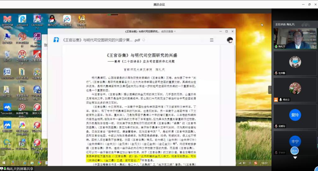 于腾讯会议平台举行了题为《<王官谷集>与明代司空图研究的兴盛——兼考<二十四诗品>应为司空图所作之问题》的学术讲座。本次讲座特邀中国《文心雕龙》学会副会长、首都师范大学av女优