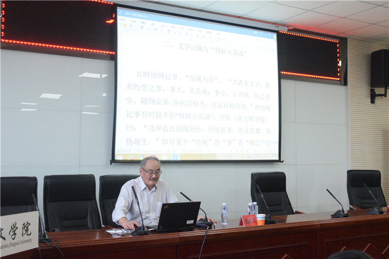 讲座伊始,胡大雷教授和大家分享了自己的求学经历、成长过程,其中,他特别谈到了学术研究方法的重要,只有掌握了科学的方法,才有可能做出好的学问。接着,胡大雷教授从“诚”与“仁”、“义”,“诚”与“天”的关系着手,由浅入深地为大家详细地阐述了何为“修辞立其诚”。他还结合春秋战国的具体史实分析,从礼崩乐坏等方面谈“修辞立其诚”,并大量引用《春秋》、《左传》中的典故,化抽象为具体,引人入胜。之后,胡大雷教授重点阐述了修辞立其诚与文本文体的生成问题,他结合《晏子春秋》以及《滑稽列传》中的人物事例生动形象的分析了何为不实言、不斥言、不直言的譬喻,使人受益匪浅。最后,王岩森教授简要总结了讲座的内容,他提倡大家将公共写作与私人写作结合起来,并强调拥有真诚的写作态度,文学创作才能达到“修辞立其诚”的效果。同时,他提出了对莘莘学子的殷切期望,希望大家能够向终身学习、持续精进的胡大雷先生学习,不断创新,成就自我。