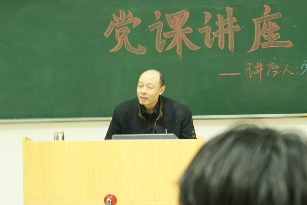 党课讲座由党总支副书记陈柯副教授主持,学生工作办公室李斌老师参加了讲座。( 文:09级新闻班 李璐宏  摄影:09级新闻班 杨建龙 )
