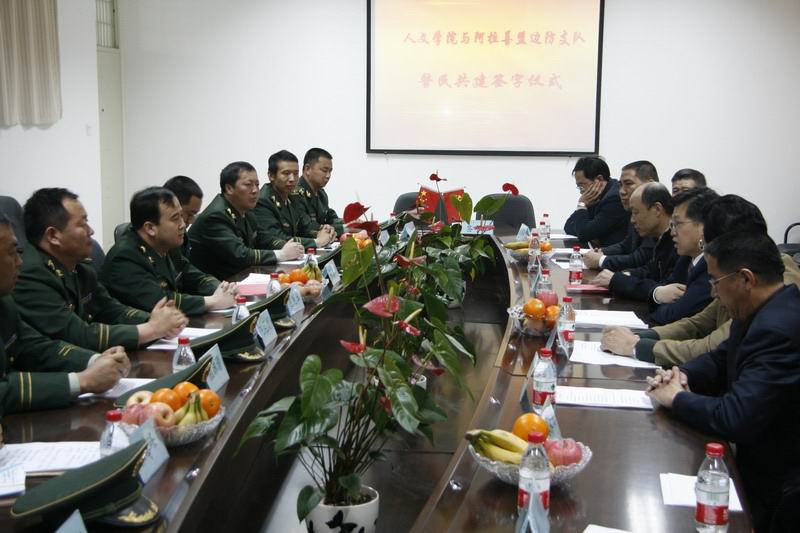 与内蒙古阿拉善盟边防支队警民共建签字仪式在我校隆重举行,校党委副书记赵利宁出席签字仪式,内蒙古阿拉善盟边防支队政治委员包宪玉一行十人及人av女优