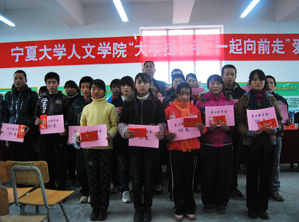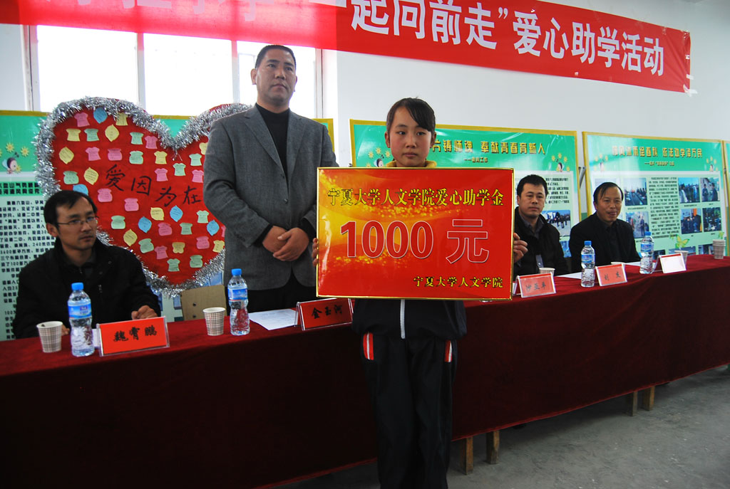 向全校24名品学兼优学生每人发放50元奖学金,向家庭困难学生代表发放爱心助学金1000元,并向各班发放爱心助学物资,主要是体育用品,如篮球、羽毛球、乒乓球等。同时由泾源县团委、泾源县教育局、为av女优