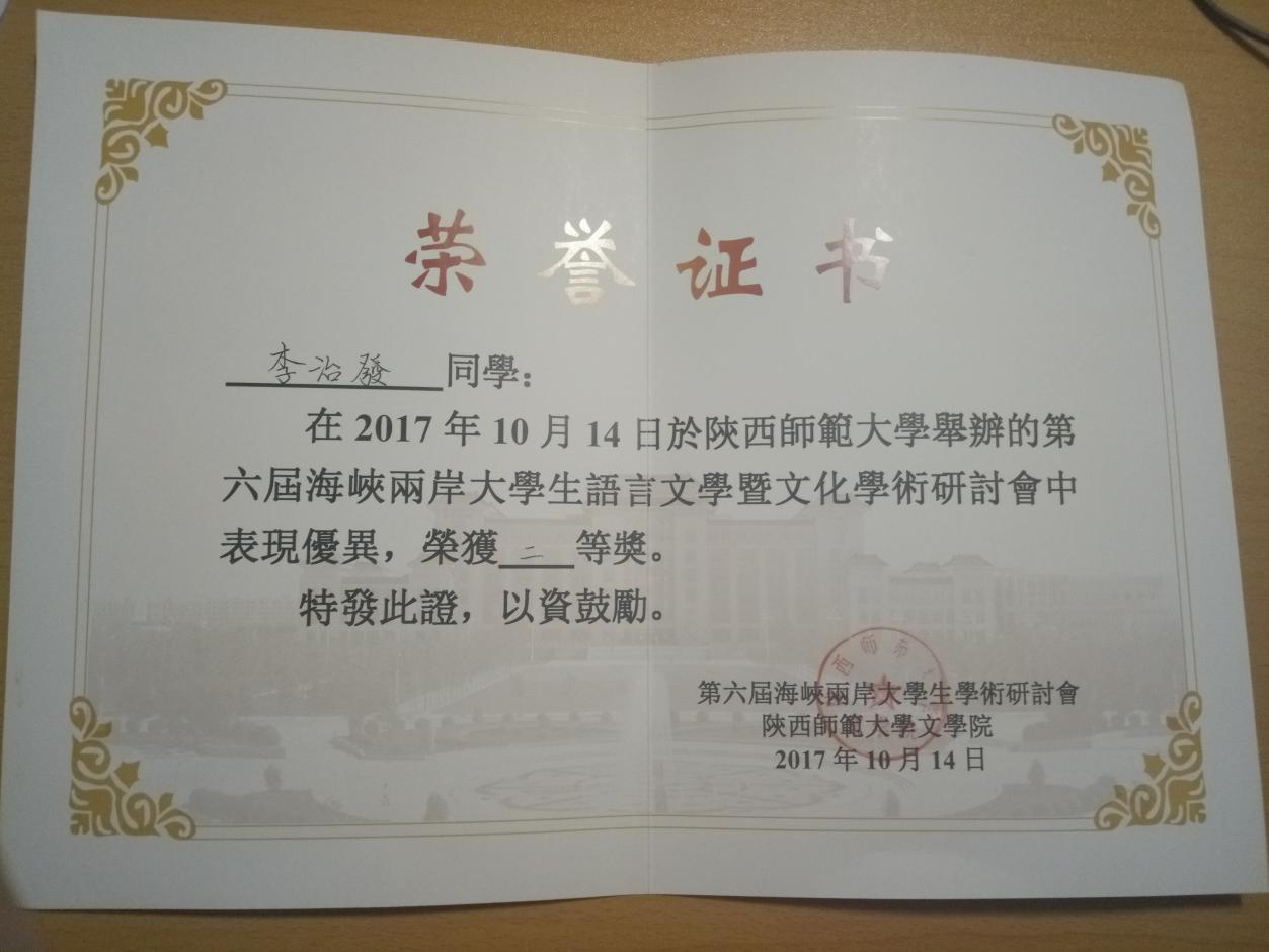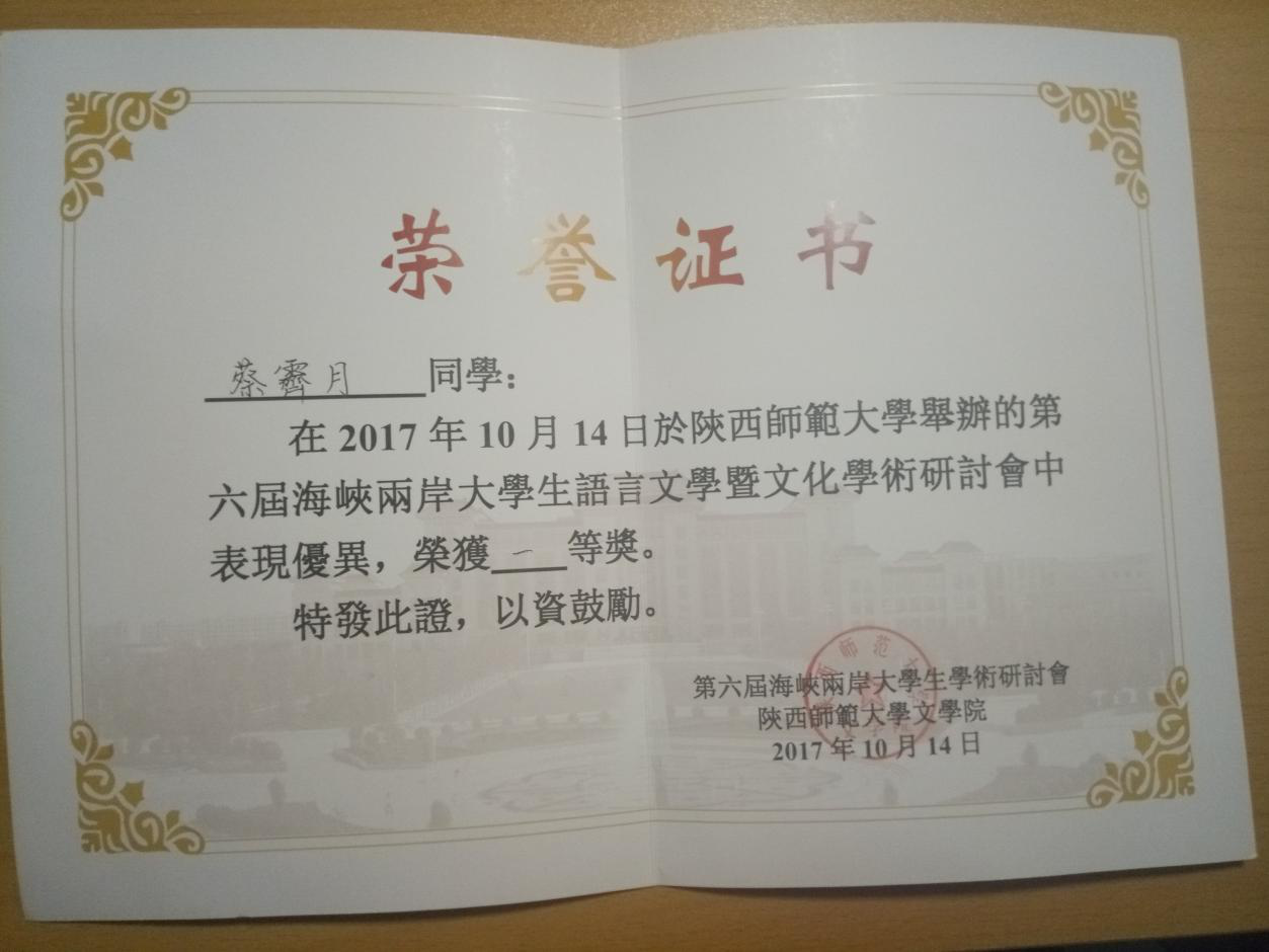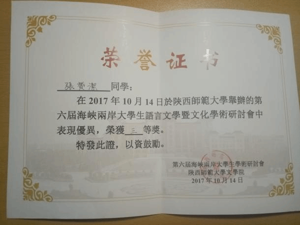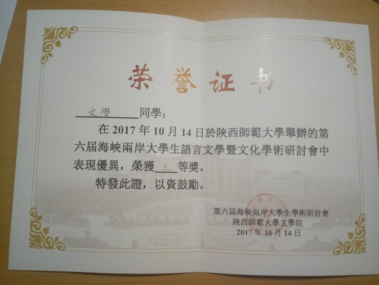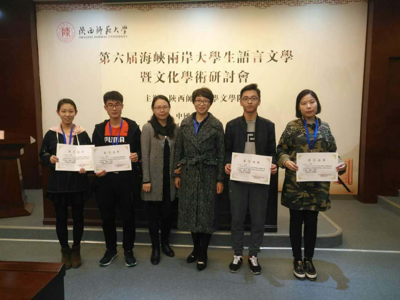 2014级汉语言文学(教育)专业的蔡霁月、张赟洁及2016级汉语言文学(文秘)专业的文学、李治发等四位同学,在副院长刘鸿雁、中文系副教授杨学娟的带领下,应邀赴陕西师范大学参加“第六届海峡两岸大学生语言文学暨文化学术研讨会”,这是中文系本科生首次参加海峡两岸大学生的学术交流会。来自台湾、安徽、江苏、吉林、山东、陕西、宁夏等地八所高校的29位本科生在研讨会上汇报、交流了自己的论文,经过评议老师的点评、专家评比、匿名投票,av女优