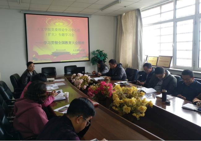 党委理论学习中心组(扩大)专题学习2018年9月10日召开的全国教育大会精神。学院党委委员、民主人士、基层党支部书记、“三办”负责人和三系主任出席,学习会由学院党委副书记金玉河主持。