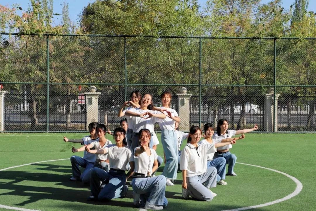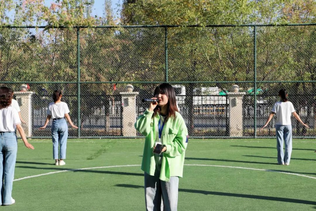 在赵胜楠同学的主持下,趣味运动会正式开始。乐声铿锵,文艺礼仪中心的同学们在开幕式上表演团体舞蹈《爱你》,将现场氛围推向高潮。