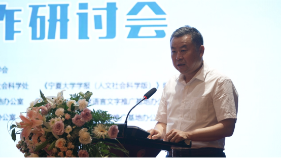 党怀兴主任代表协办单位祝贺新时代首届西北地区高校语言文字工作研讨会顺利召开。他提出,我们要互相学习,建立西北地区基地协作的体制机制,商讨如何在西北地区更好推广国家通用语言文字,如何与东部高校联手,资源共享,协力合作,服务西北地区的国家通用语言文字推广工作。