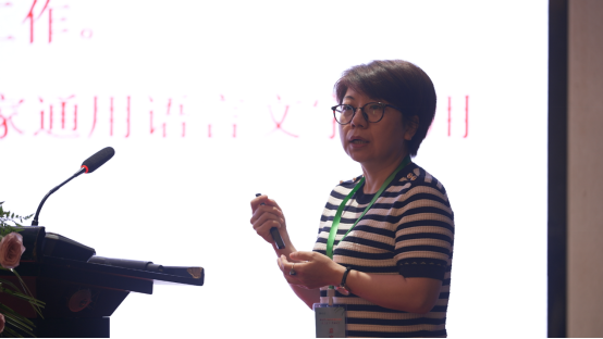 庹迎香副处长代表教育部语用司向会议召开表示热烈祝贺。她指出,这次会议恰逢其时,具有特殊的重要意义:第一,新时代党和国家对语言文字工作提出了新的要求,需要进一步学习贯彻落实;第二,西北地区普通话推广普及的任务仍很艰巨,这次会议聚焦西北地区,找准了工作的重点;第三,高校在我国语言文字事业中始终发挥非常重要的作用,语用司对这次会议寄予厚望,希望能研讨交流出更多金点子。庹处长最后对会议提出三点期待:期待高校在加快建设教育强国中发挥更大作用,期待高校在建设中华民族现代文明中发挥更大作用,期待高校在服务铸牢中华民族共同体意识中发挥更大作用。
