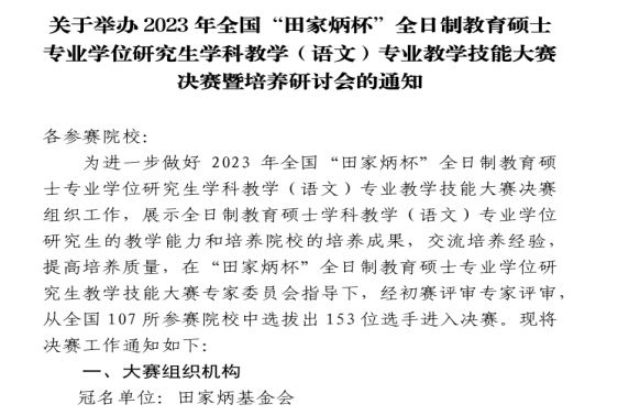 2023年10月15日,由全国教育硕士专业学位教学指导委员会指导,长春师范大学主办的2023年全国“田家炳杯”全日制教育硕士专业学位研究生学科教学(语文)专业教学技能大赛决赛圆满落幕。我校av女优