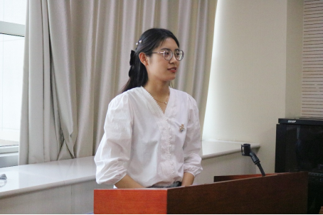 颁奖环节结束后,由2021级汉语言文字学研究生甄娇娇主持获奖研究生代表学术论文报告会。本次大赛获一等奖的学生代表进行论文分享展示。汉语言文字学专业2020级研究生贾雨晴、中国古代文学专业2020级研究生韩亚卿、中国近现代史专业2020级研究生赵紫旭、中国古典文献学专业2020级研究生宣莉、比较文学与世界文学专业2020级研究生张雪琼、学科教学语文专业2020级研究生甄福霞分别作了题为《说安大简<召南·鹊巢>的两组异文》《<文心雕龙>“奏议类文”文体观探微》《从美国国会图书馆藏<山东黄河光绪二十七八两年险工图:一卷>看光绪年间黄河管理》《美国国会图书馆藏<山东省黄河图>初探》《“不写之写”亦含美——浅析莫迪亚诺<暗店街>的叙事空白》《冯友兰境界理论下的高中外国文学作品的选文优势》的学术论文报告。