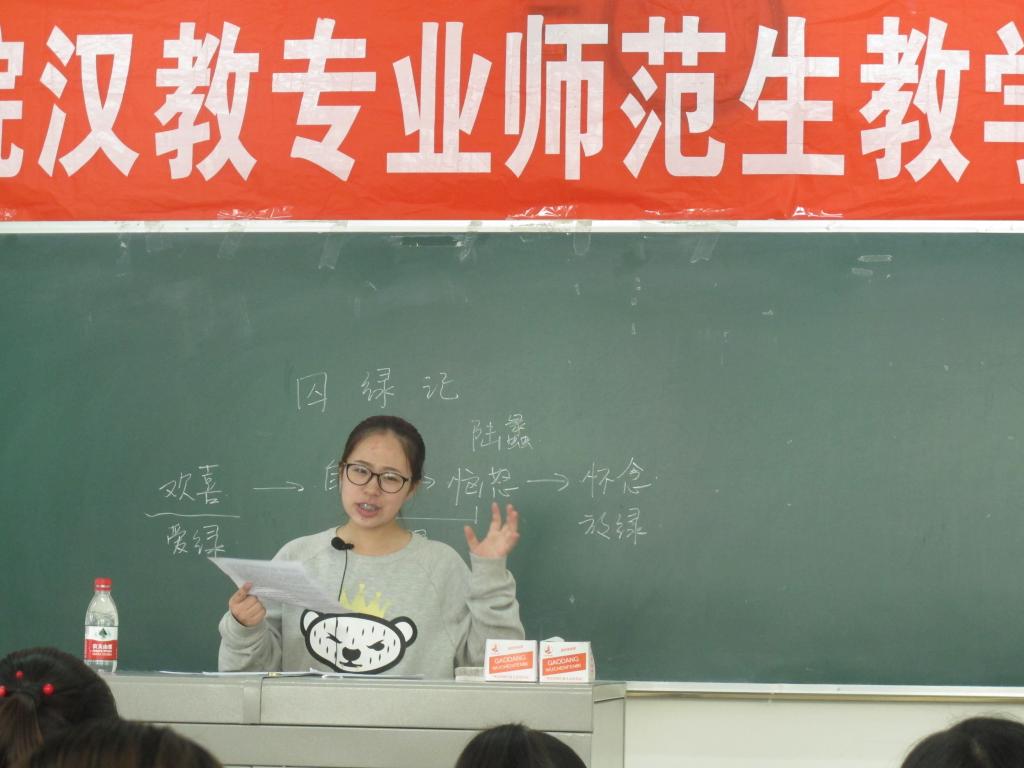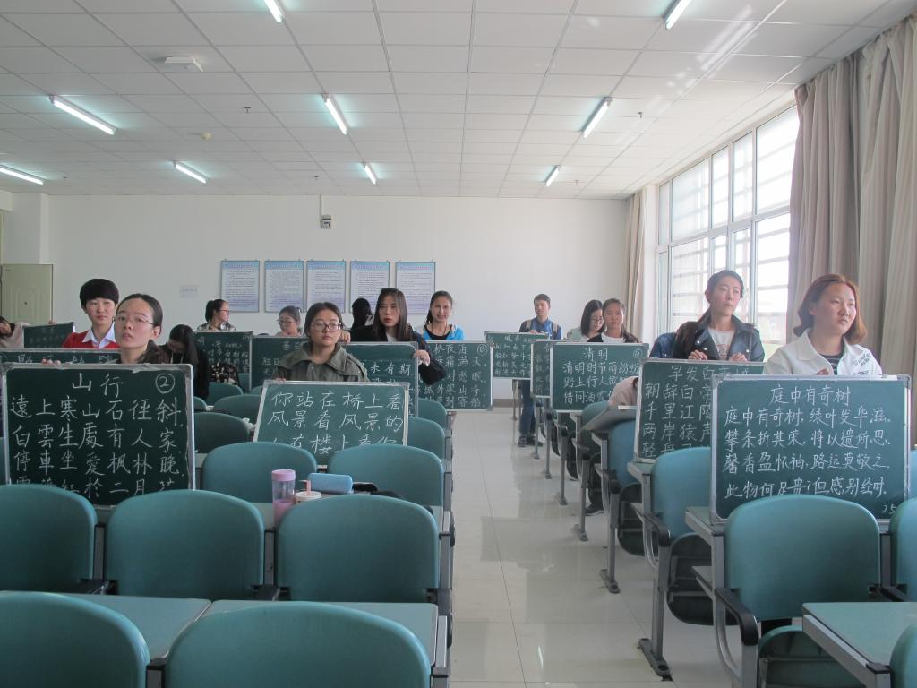 经过初赛和复赛的教学设计、模拟授课、板书设计、课件制作、说课等环节的大浪淘沙,13位学生脱颖而出进入决赛。决赛包括即兴演讲和模拟授课两个环节,即兴讲演的主题和模拟授课的篇目均由抽签决定,这无疑是对选手的专业素养和临场发挥能力的综合考验。在即兴演讲环节,各参赛选手从所抽到材料中提炼出与教育教学相关的主题,切中肯綮,侃侃而谈,以其严密的逻辑和富于感染力的语言展示出师范生应有的风采;在模拟授课环节,各参赛选手根据文章体裁进行教学设计,文本分析深入浅出,教学思路破旧立新,板书设计别出心裁,师生互动收放自如,使得比赛过程中亮点频出。选手们或幽默风趣、或抒情优美、或端正肃穆的授课风格和从容自信、挥斥方遒的教态展示出了师范生扎实的教学技能和昂扬的精神风貌。经过紧张激烈的角逐,2014级韩允同学斩获综合奖桂冠,李潇、马志秀、刘骏青分别获得粉笔字、板书设计、即兴讲演的单项一等奖。
