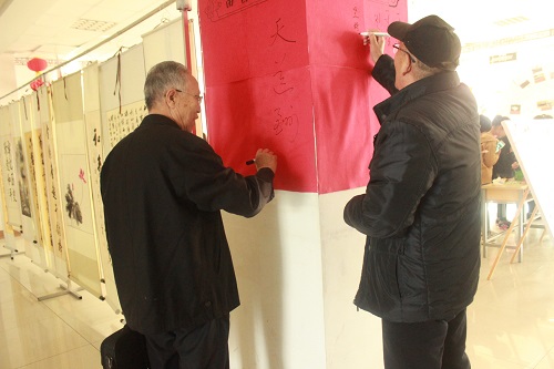开幕式结束后,进入作品欣赏环节及互动环节。各班组织同学有序参观欣赏作品,并在文科楼406教室与“可为书画社”的老教师们进行交流,学习书法艺术,接受书法艺术的濡染熏陶。