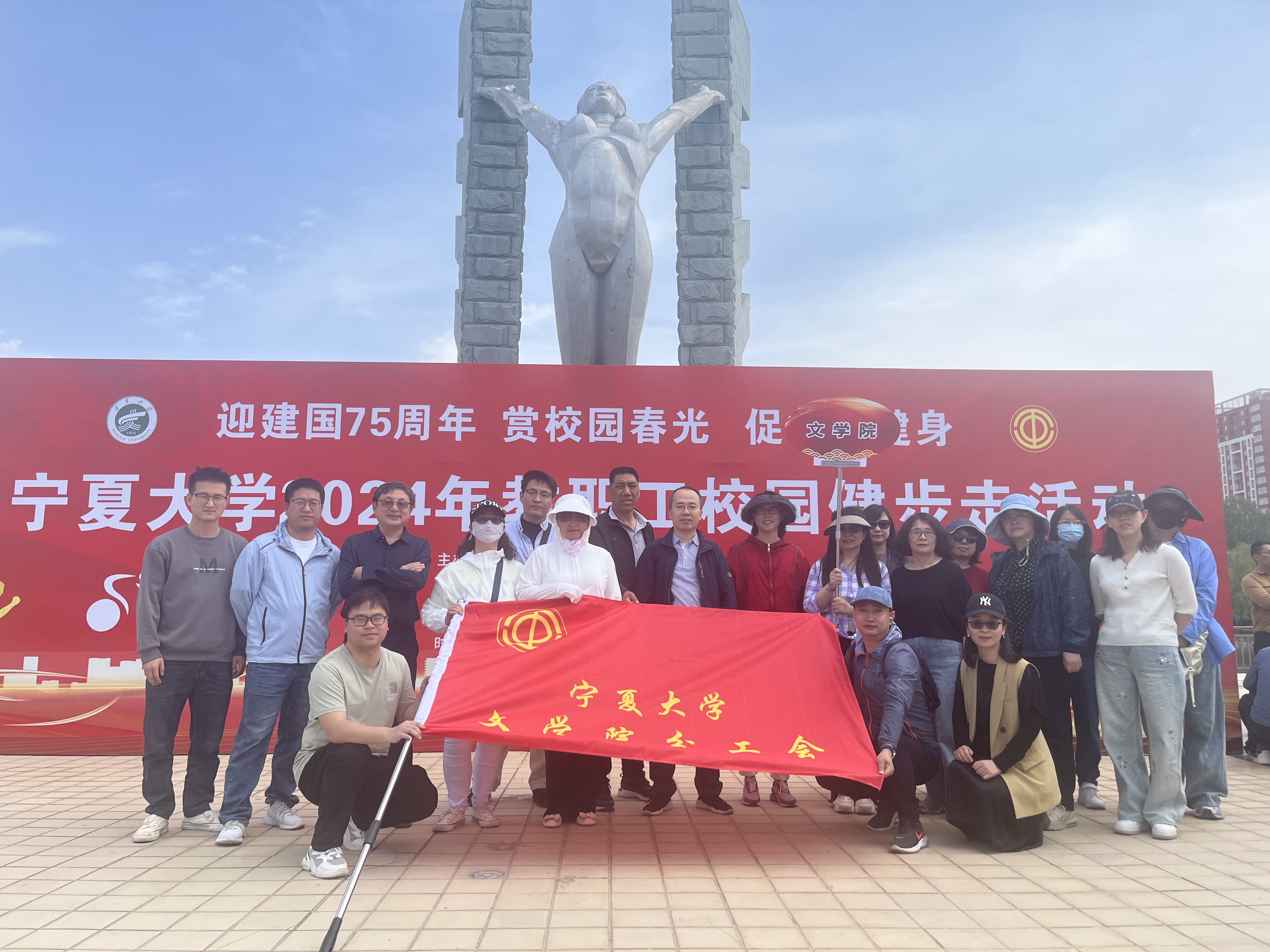 教职工齐聚凌云广场,积极参加学校工会举办的健步走活动。