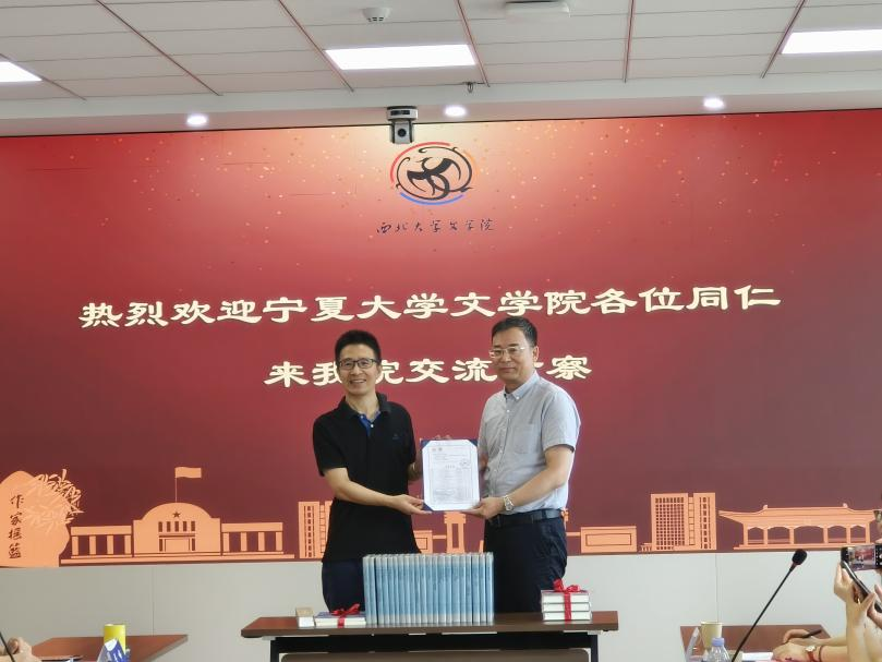 谷鹏飞院长与胡玉冰院长还代表双方学院互赠了学科建设成果。