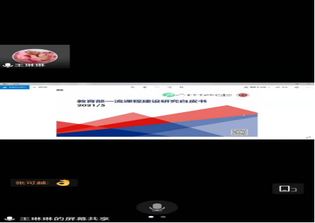 在线一流精品课”的王琳琳老师分享相关经验,研讨、推进教研室教师金课的申报工作。